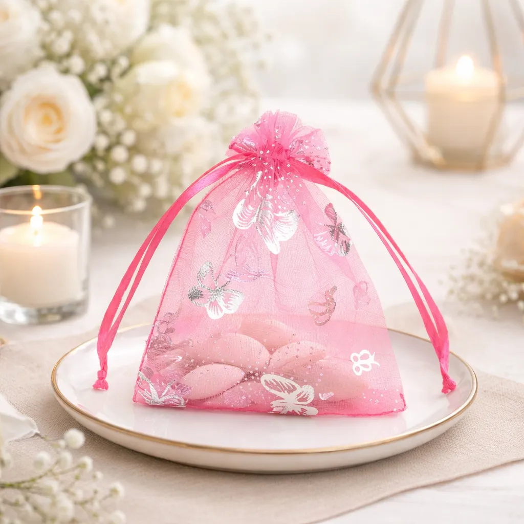 Ce sac à dragées mariage papillons apporte une touche aérienne et romantique à votre réception. Sa transparence légère met subtilement en valeur les dragées, tandis que les motifs papillons créent une atmosphère douce et féerique. Idéal pour un thème printanier ou champêtre, il complète votre décoration avec finesse. Placé sur chaque assiette, il devient un détail décoratif charmant qui séduit immédiatement vos invités.