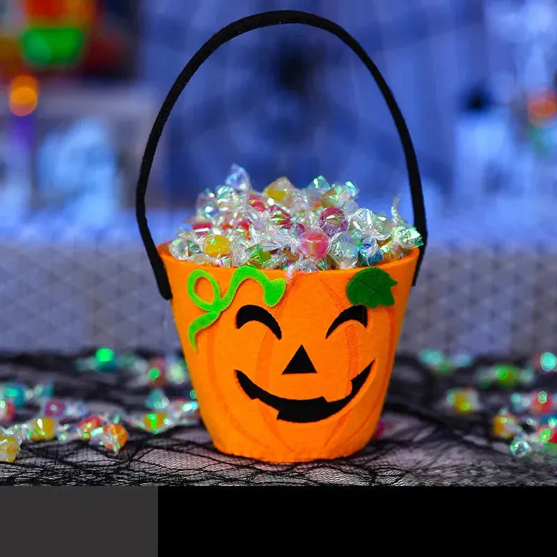 Craquez pour ce seau à friandises orange au design joyeux, parfait pour récolter les bonbons d’Halloween avec style et bonne humeur.