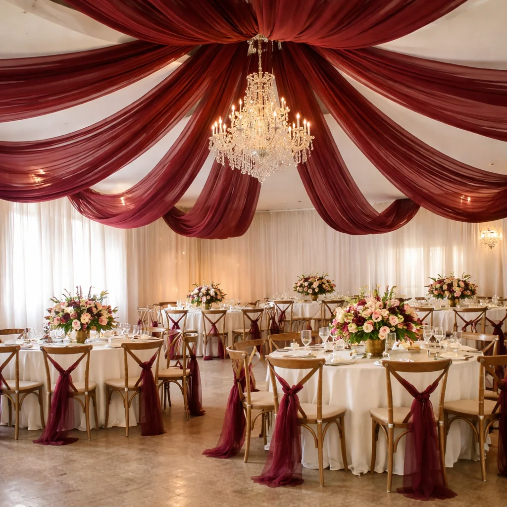 Sublimez votre Ciel de Mariage avec le Voilage Bordeaux en Tulle